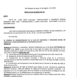 San Salvador de Jujuy, 21 de Agosto de 2.025.- RESOLUCION NUMERO 88 /25 VISTO: EXPTE. Nº 2.854 /2025 […]