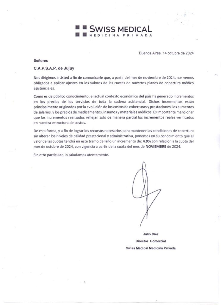 INCREMENTO CUOTA NOVIEMBRE 2024 -SWISS MEDICAL