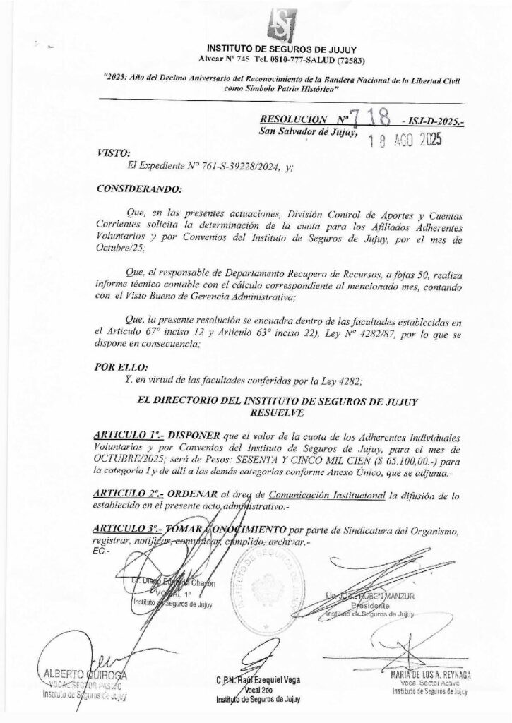 ISJ- INCREMENTO VALOR CUOTA OCTUBRE 2025 -RES 718-ISJ-D-2025 Y ANEXO UNICO RES 718-ISJ-D-2025 OCTUBRE 2025. 17 de septiembre de 2025