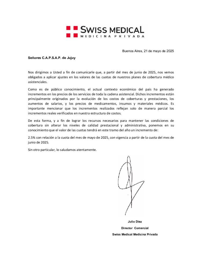 SWISS MEDICAL- CARTA INCREMENTO JUNIO 2025