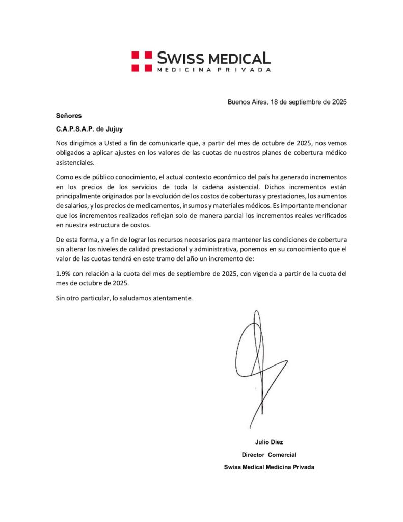 SWISS MEDICAL – CARTA INCREMENTO -OCTUBRE 2025