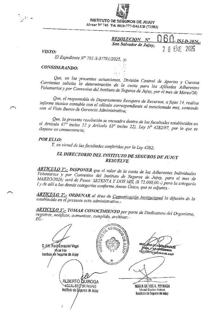 ISJ- INCREMENTO VALOR CUOTA MARZO 2026- RESOLUCION N°060-ISJ-D-2026 Y ANEXO UNICO RES.N°060-ISJ-D-2026. 27 de febrero de 202627 de febrero de 2026