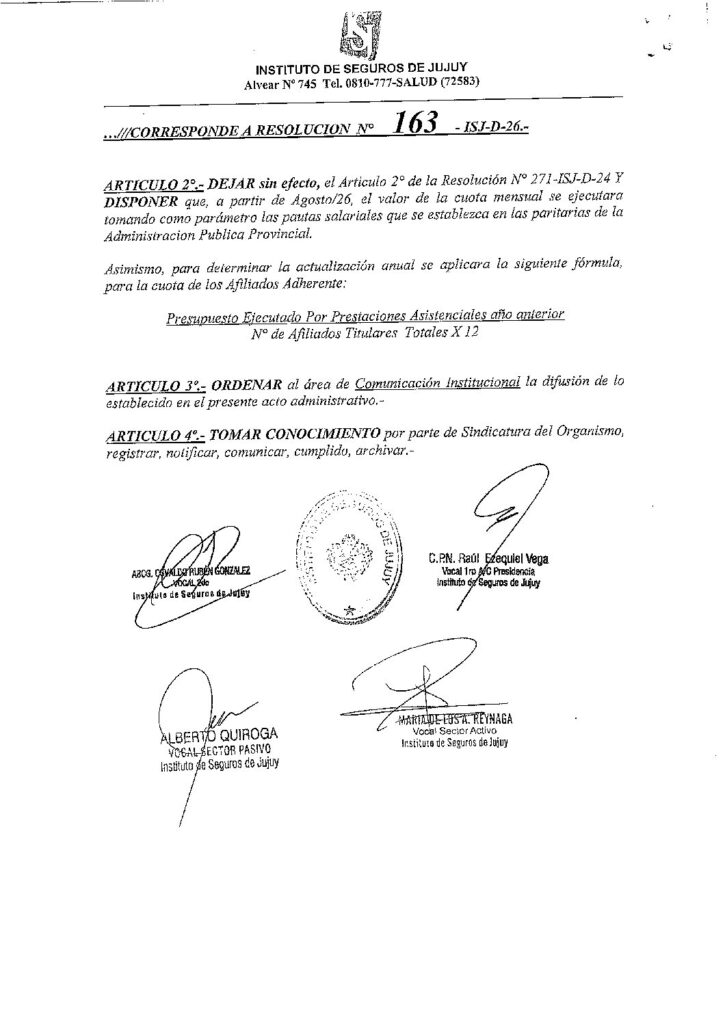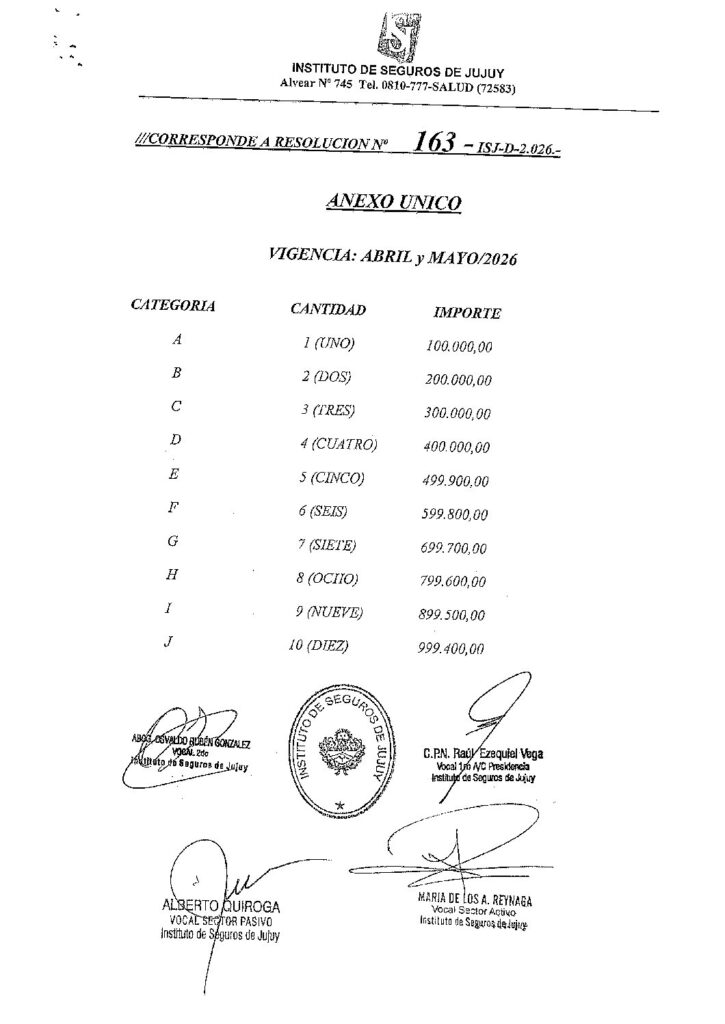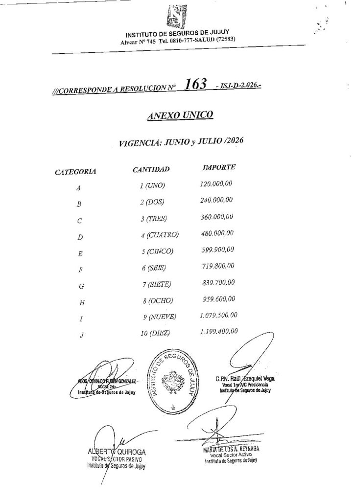 ISJ- INCREMENTO VALOR CUOTA – RESOLUCION N°163-ISJ-D-2026- VIGENCIA (ABRIL – MAYO 2026) Y (JUNIO – JULIO 2026) Y SUS RESPECTIVO ANEXOS- RES 163-ISJ-D-2026. 26 de marzo de 2026